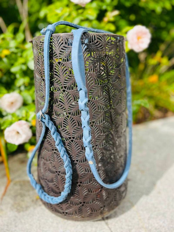 Fettleder Pastell Blau, geflochten mit Silber Metall Stopper, Schrauben und Ring