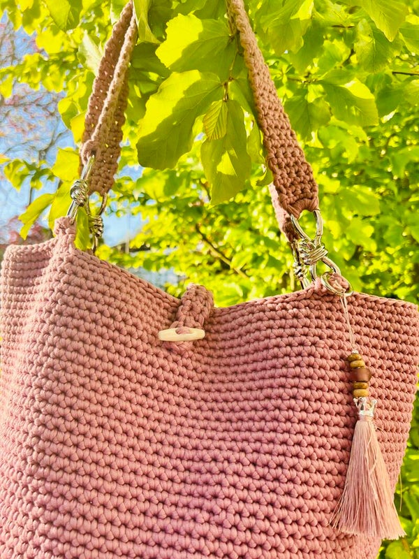 Schöne Häckeltaschen mit Anhänger (Silber Krone) und Silber-Metall-Hänkel Verbinder.